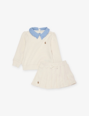 Girls' Polo Pony-embroidered pleated stretch-woven mini skirt- Price:$108.00