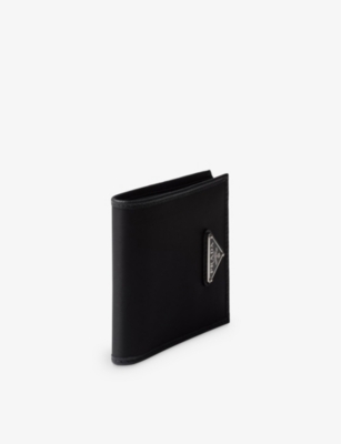 What to expect from a men's designer Prada wallet? For a start, you'll find a selection that caters to a range of needs. Consider whether you'd prefer a nifty cardholder or bi-fold wallet, then find a shape that suits. Each comes stamped with the iconic triangle logo, either embossed directly onto the leather or carved into a metal plaque in the corner.
