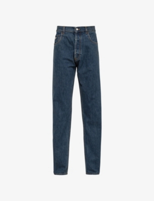 Triangle-Logo Wide-Leg Chevron Denim Jeans