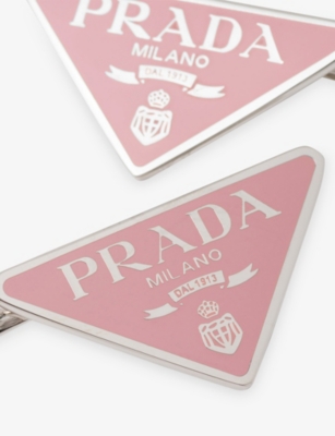 In our collection of Prada hair accessories, you'll find 90s-inspired padded headbands with embellishments and embroidery, plus clips and pins - all finished with the label's distinctive triangle logo. Scoop hair up into a bun, then slip into a Prada dress.