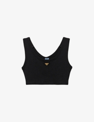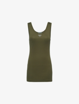 Lace-Up Triangle-Patch Cotton-Jersey Tank Top