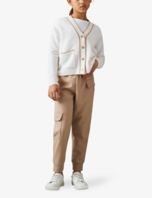 Juni contrast-tipping knitted cardigan 4-9 years
