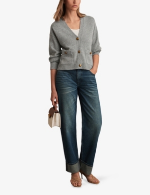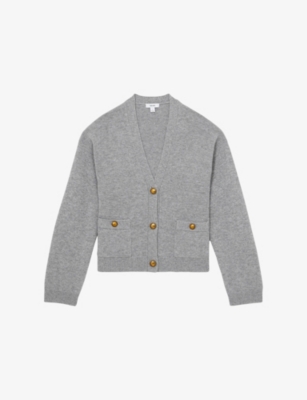REISS: Maya V-Neck Wool and Cashmere CardiganREISS: Maya V-Neck Wool and Cashmere Cardigan
