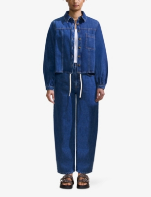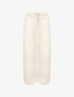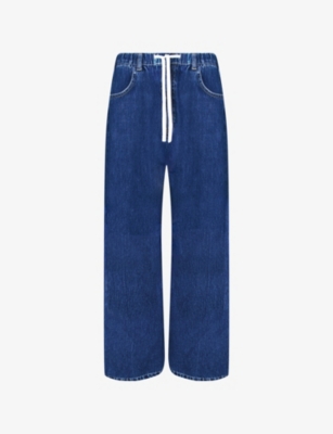 Drawstring-Waist Slim Barrel-Leg Denim Jeans