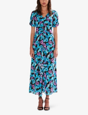 Floral-Print Frill-Front Woven Midi Dress- Discount price:$71.00