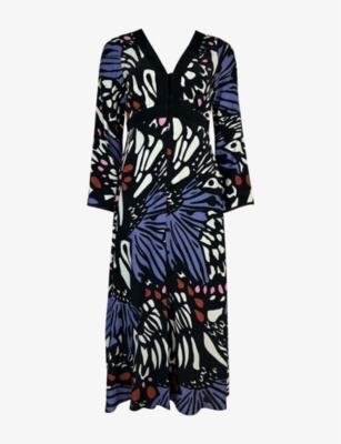 Multi Butterfly-Print Button-Through Crepe Midi Dress- Discount price:$46.50