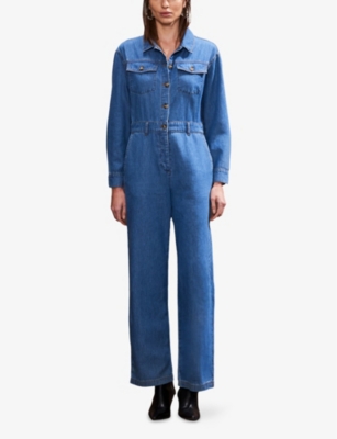 Long-Sleeve Button-Up Denim Jumpsuit