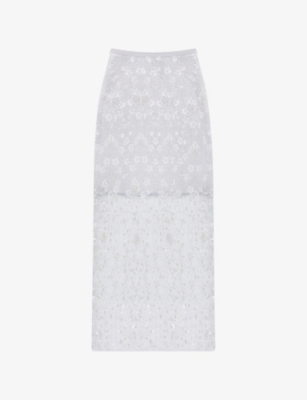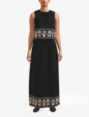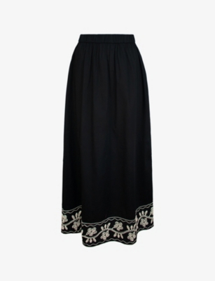 Embroidered-Panel Elasticated-Waist Stretch-Cotton Maxi Skirt- Discount price:$35.00