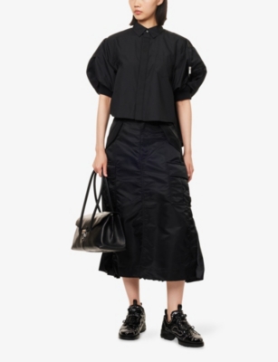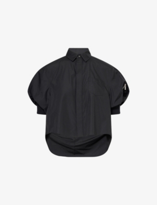 Cropped Puff-Sleeve Cotton-Poplin Shirt