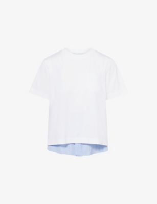 Striped-Panel Short-Sleeves Cotton-Jersey T-Shirt