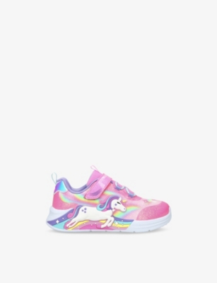Our girls' sneakers collection is home to soft fabrics, supportive soles and padded heels to make all-day wear extra comfortable. For a flawless fit, choose from classic lace-ups or hook-and-loop tape fastenings - super-easy for younger years to slip on before stepping outside. Select casual footwear for your girl with sneakers crafted from different fabrics. Opt for minimalist girls' leather shoes in white or add textured detail with mesh and knitted designs. Introduce a playful pop of colour to kids' footwear with metallic trims, striped panels and vibrant laces in rainbow hues.Â