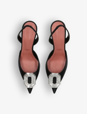 AMINA MUADDI: Camelia crystal-embellished satin heeled slingback pumpsAMINA MUADDI: Camelia crystal-embellished satin heeled slingback pumps