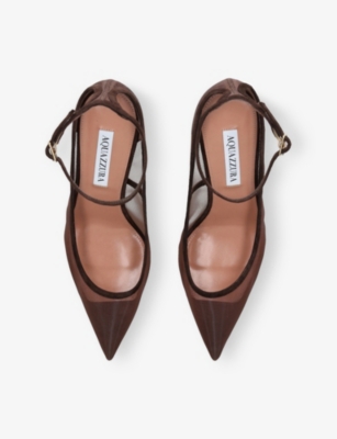 AQUAZZURA: Love Affair 80 Mesh and Suede CourtsAQUAZZURA: Love Affair 80 Mesh and Suede Courts