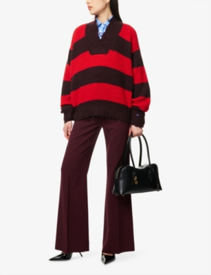 Stripe-Pattern V-Neck Wool-Blend Jumper