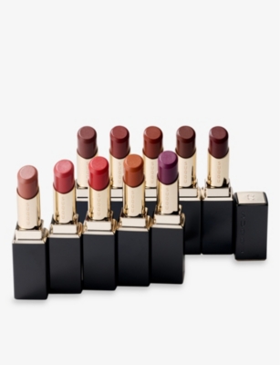 Start your regime with a plant-based primer that's packed with nourishing oils to keep skin quenched beneath your foundation. Look out for options with added SPF for protection against the sun's rays too. Say goodbye to blemishes with a liquid foundation or loose powder. There's a wide range of skin tones on offer that makes it easy to find a match. We're finishing up with a bold slick of SUQQU lipstick to make sure that when we're talking, we've got everyone's attention.