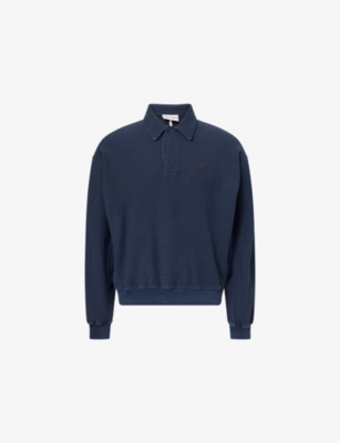 Ribbed Polo-Collar Cotton-Jersey Sweatshirt