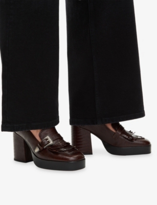 Buckle-embellished Lizard-Embossed Leather Block-Heel Loafers