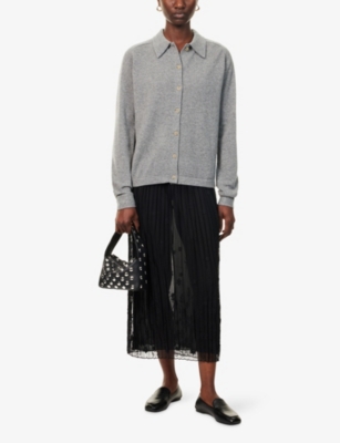 Relaxed-Fit Buttoned-Cuffs Cashmere Cardigan