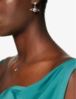 Perhaps you'll keep it minimalist and go for a pair in strictly gold or silver colour. Whatever you select, there'll be no escaping the iconic visual representation of the Saturn of the orb (inspired by the British monarchy's crown jewels) dotted across the pieces.
