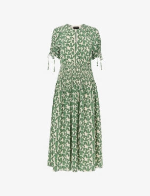 Scribble bouquet-pattern self-tie woven midi dress- Discount price:$78.00