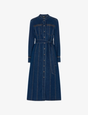 Short-Sleeve Denim Midi Dress- Discount price:$107.00