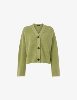 V-neck ribbed wool and cashmere cardigan