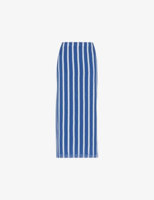 Stripe-print high-rise cotton and linen-blend midi skirt- Discount price:$66.00