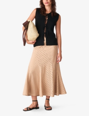 Broderie Fluted-Hem Regular-Fit Cotton Midi Skirt- Discount price:$102.00