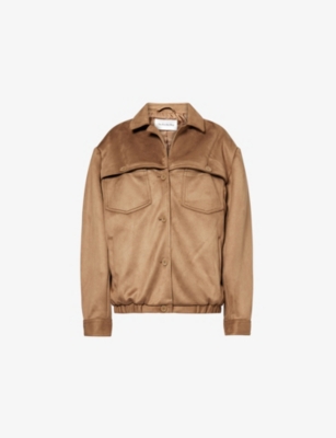 Cover up in a casual women's designer jacket. You'll find pieces crafted from high-quality textures: think super-soft shearling, shiny patent leather and opulent cashmere blends. Accentuate your figure in a cropped piece that closes with buttons or a zip. With a short-cut silhouette and fitted design, it's an ideal option for pairing with high-waist pants and heels. Strike a vintage-inspired note with ribbed corduroy jackets you can drape over your shoulders in the evening for a sleek finish. To go casual, explore oversized shapes in embroidered cotton twill and fleece mixes.Â