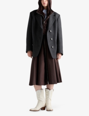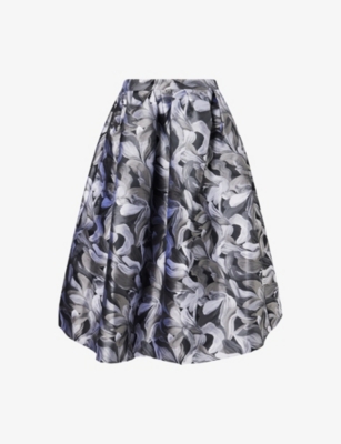 Invest in knit midi skirts with fluid open weaves and scalloped hems, as well as wool-blend iterations that fuse traditional tailoring codes with sculptural volumes. Discover A-line shapes woven in heritage-inspired check prints and offset with contrasting trims and wrap-around details, or pieces rendered in crocodile-embossed leather in vivid shades such as fuchsia and scarlet. You'll find soft calf-skimming cotton options finished with dramatic ruched panels alongside breezy items signed off with ruffles, feathers and embroidered flourishes.