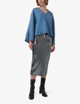 At the office, go for a woven pencil skirt in a neutral shade of black or brown. If you're looking to add some edge to your outfit, try an AllSaints or Sandro pencil skirt in black leather or suede - then just team with heeled boots. For an ultra-feminine finish, opt for a designer pencil skirt with ruffles or lace detail. Want to make a statement? Our collection is brimming with scene-stealing options: select a brightly coloured or printed design. With its straight, narrow cut and below-the-knee hem, a designer pencil skirt offers classic elegance.