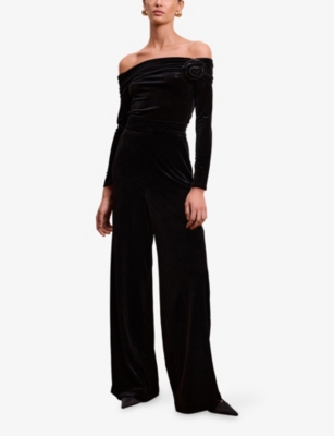 Livia Wide-Leg High-Rise Stretch-Velvet Trousers