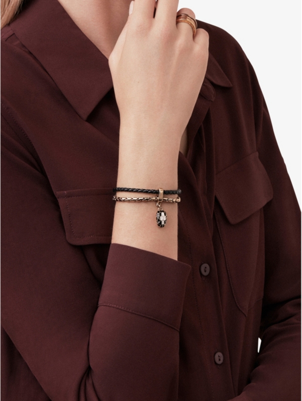 - Bvlgari extra-small brass, leather and quartz charm bracelet