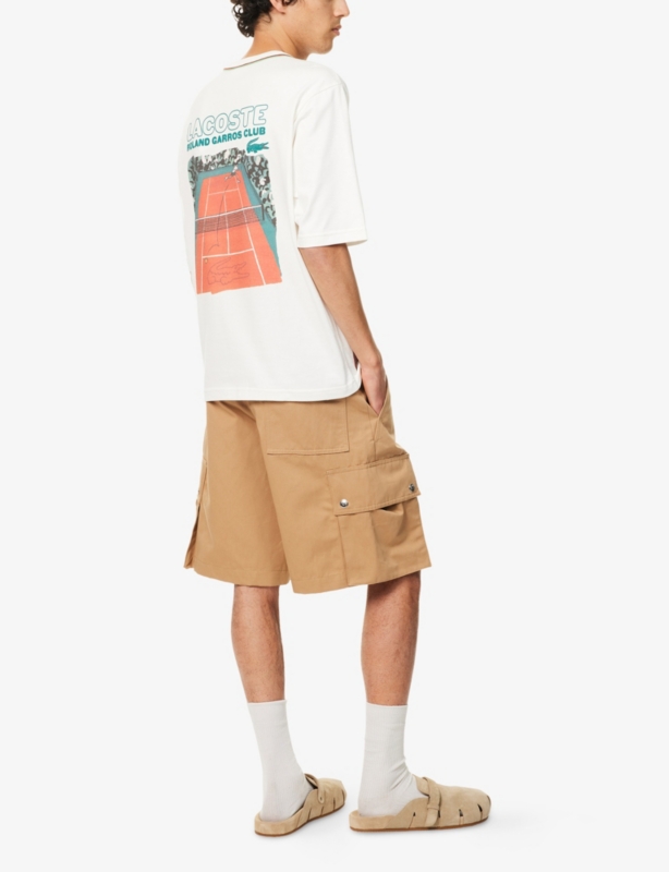 - Regular fit, ribbed crewneck, short sleeves, brand patch at front