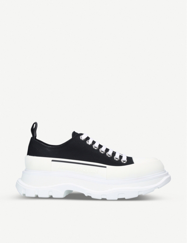 An exaggerated take on the plimsoll style, the Tread Slick trainers from Alexander McQueen are a hybrid model with a chunky rubber sole – proving the label’s talent for creating experimental styles with equal wearability. The canvas upper hosts classic metal eyelets and a heel pull tab with the label’s branding proudly printed across. Use the footwear style to finish your tee and mini skirt ensemble.