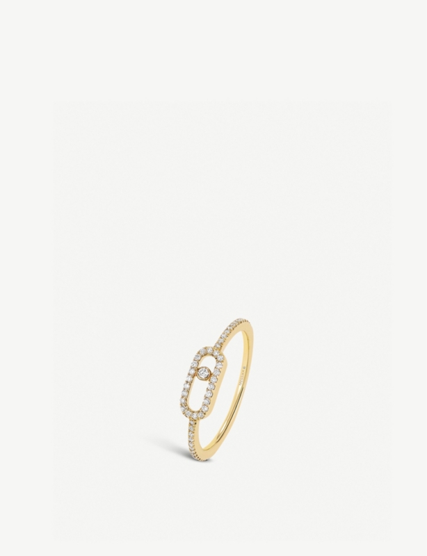 - Halo motif shape with circular diamond in between, engraved logo, polished finish