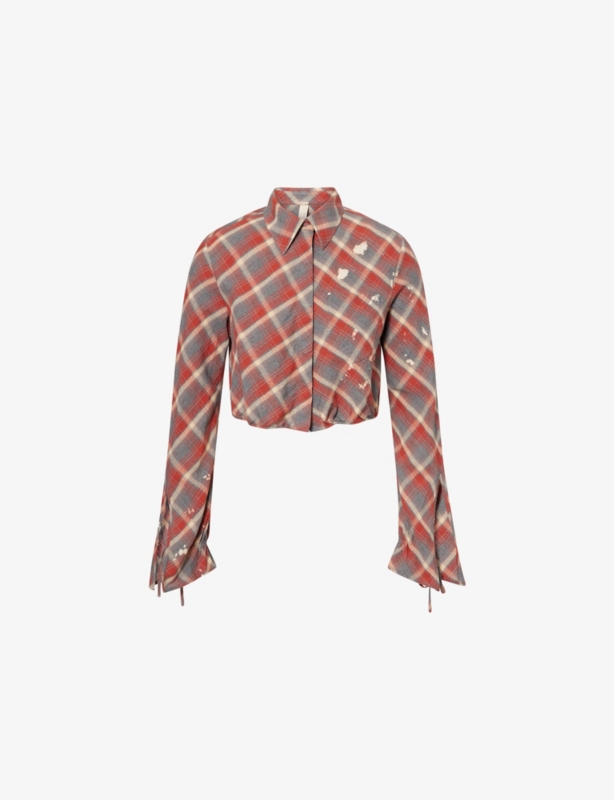 - Regular fit, mid-rise, dipped waist, wide leg, belt loops at waist, slip pockets at front, pockets at back, zip trims at front, polished hardware, crinkle finish