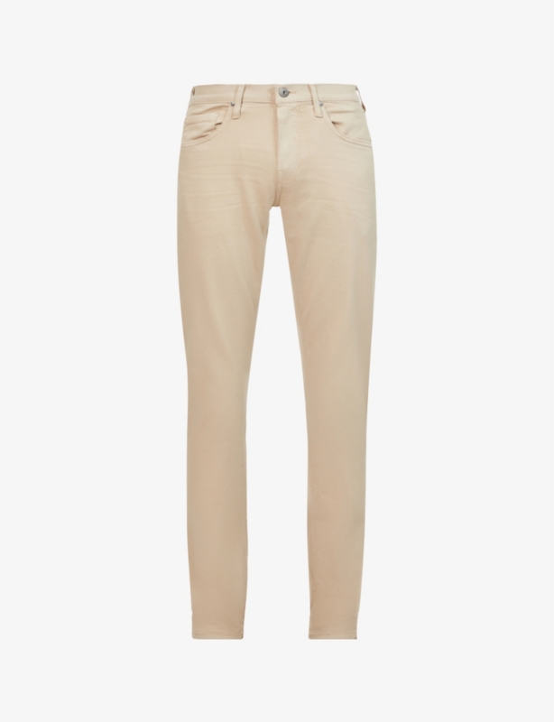 - Relaxed fit, mid-rise, straight leg, belt loops, slip pockets at sides, darts at back, welt pockets at back