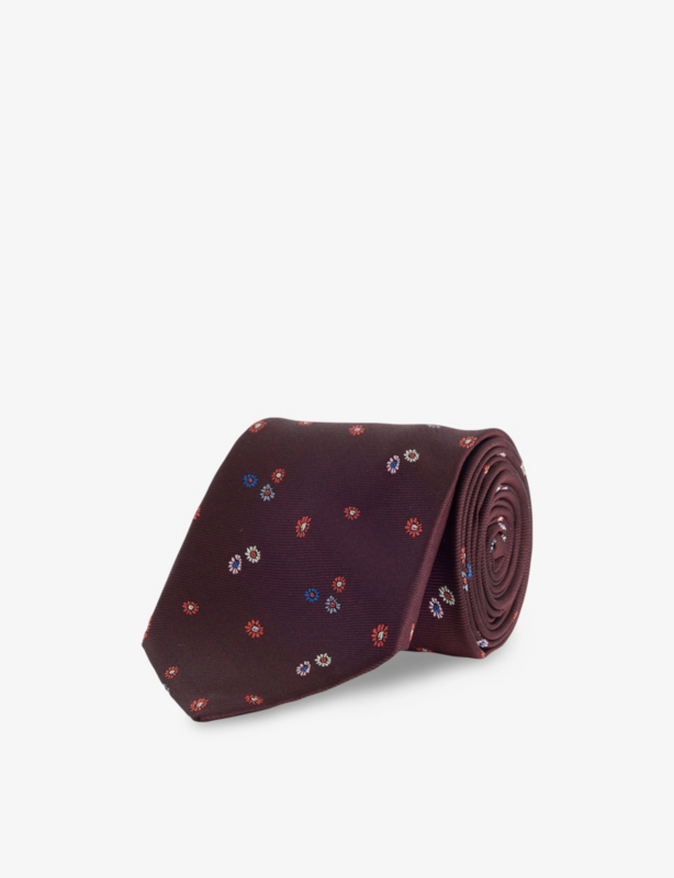 - Wide blade, pointed tip, keeper-loop at interior, all-over polka dots
