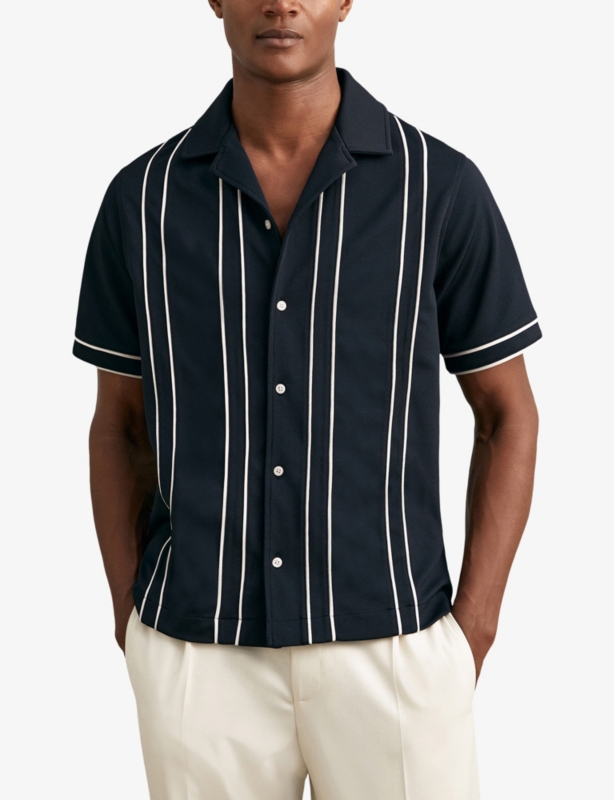 - Regular fit, open collar, short sleeves, ribbed trims, knitted