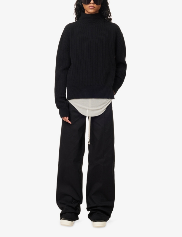 - Loose-fit, elasticated drawstring waist, two slip pockets at sides, two flap pockets, cropped length