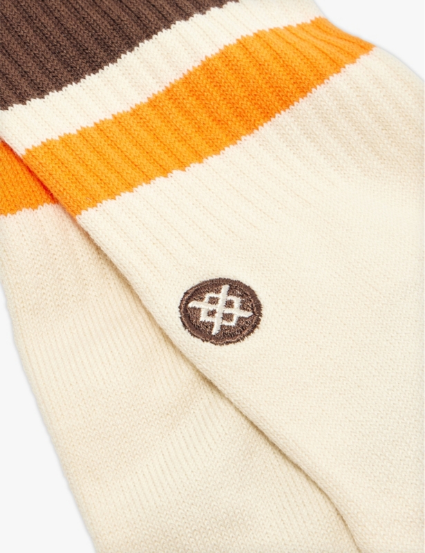 - Logo weave, stripes, embroidered patch, ribbed cuff