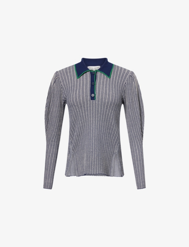 - Regular fit, square neck, short puff sleeves, flared peplum hem, elasticated cuffs, ribbed elasticated back panel