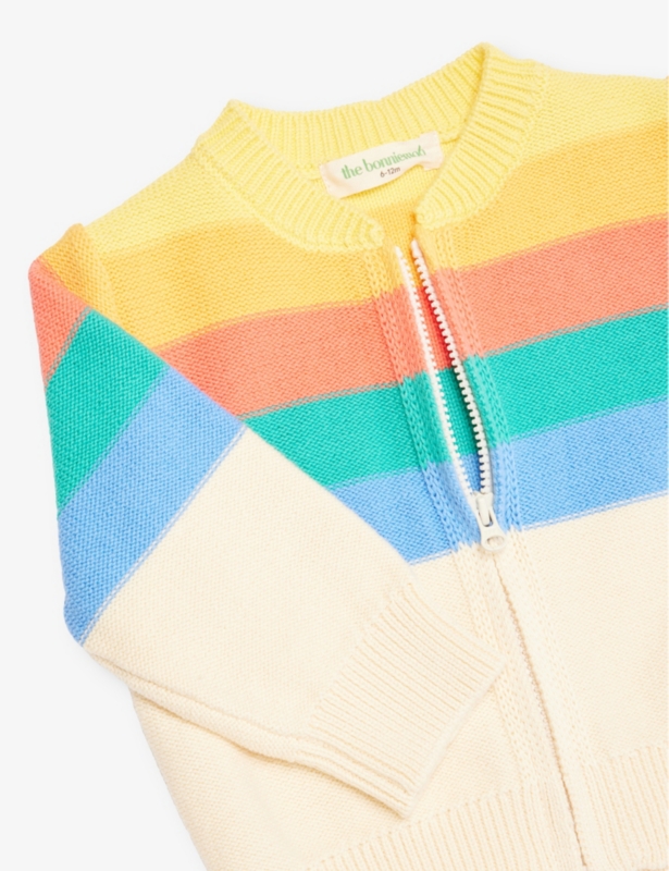 - All-over knit fabric, rainbow stripe pattern, ribbed trims