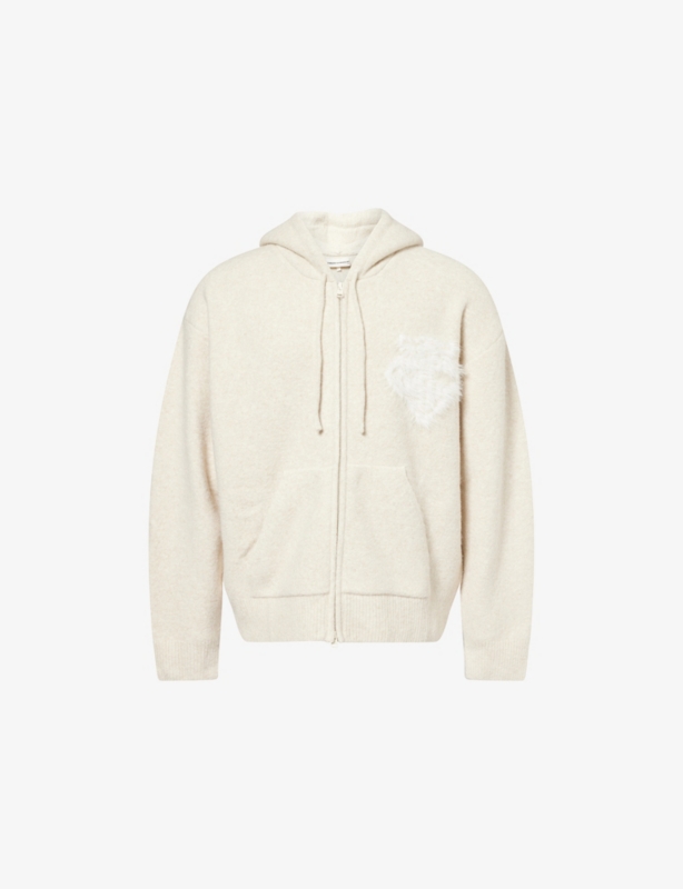 - Relaxed fit, mid-rise, straight leg, drawstring elasticated waistband, two slip pockets and monogram patch at front, patch pocket at back, all-over melange print, brushed interior