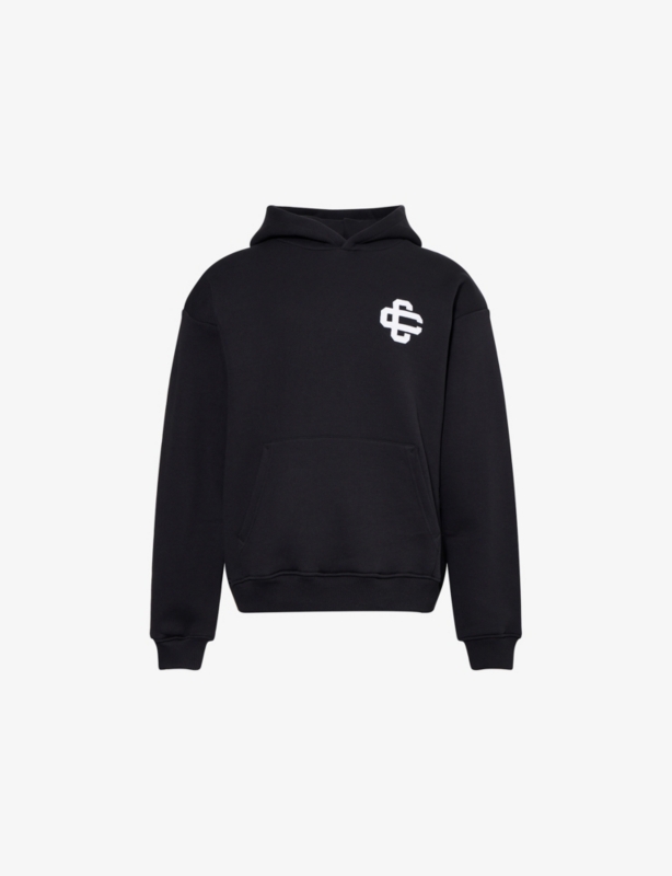 - Relaxed fit, high-rise, wide leg, drawstring elasticated waistband, two slip pockets at front, fluffy monogram intarsia at side, patch pocket at back, all-over knitted