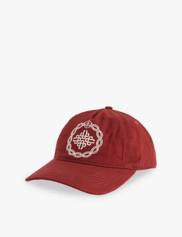 - Curved peak, monogram embroidery at front, text print at side, six panels, eyelets embroidery, all-over twill texture, internal sweatband and brand tab