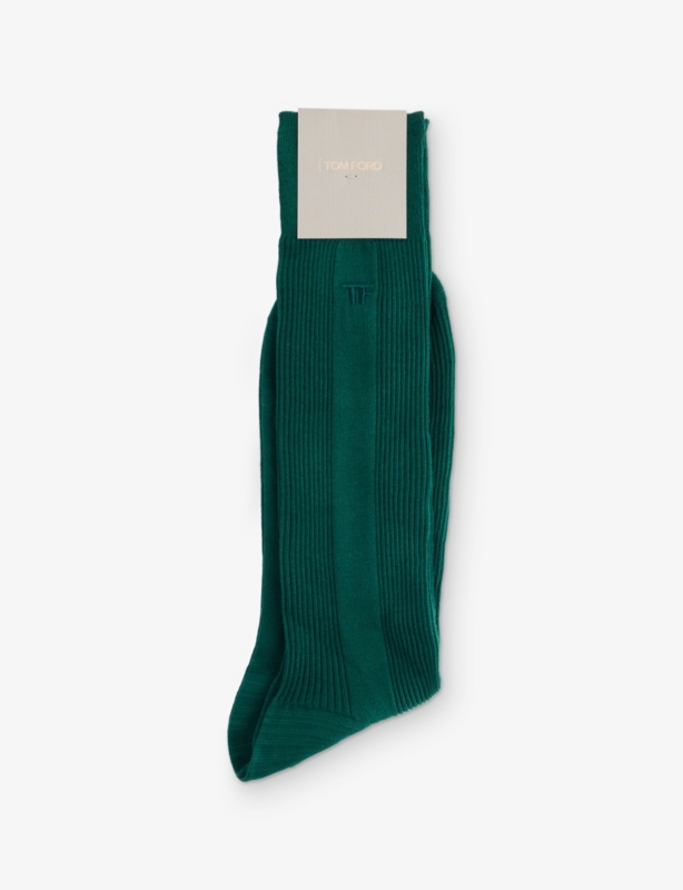 - Crew length, ribbed panels, embroidered logo at side, logo print at footbed
