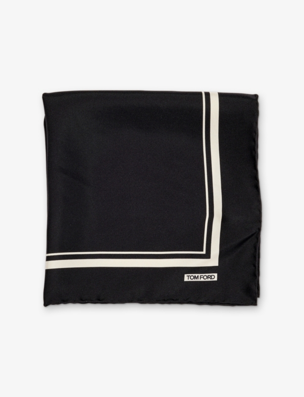 • Square shape, all-over polka-dot pattern, logo print, contrasting border